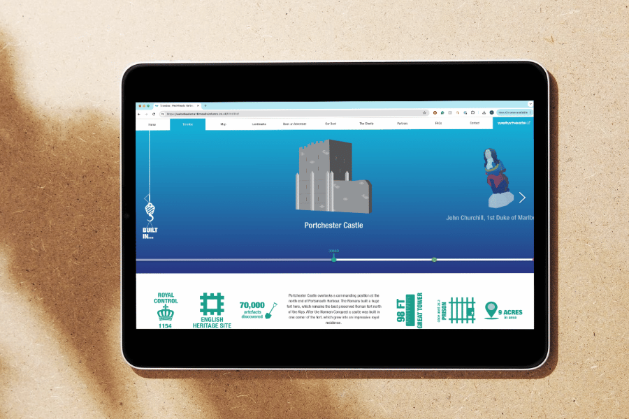 We designed and built a microsite for the Wetwheels Maritime Heritage Trail consisting of an interactive map of the harbour where all points of interest (POI) had information and images that could be clicked and explored. The site was designed to be picture-led, allowing users to determine the level of detail they wished to drill down into for each POI. The website launch was supported by a very successful event with businesses and local influencers, as well as the production of a brochure and other materials.